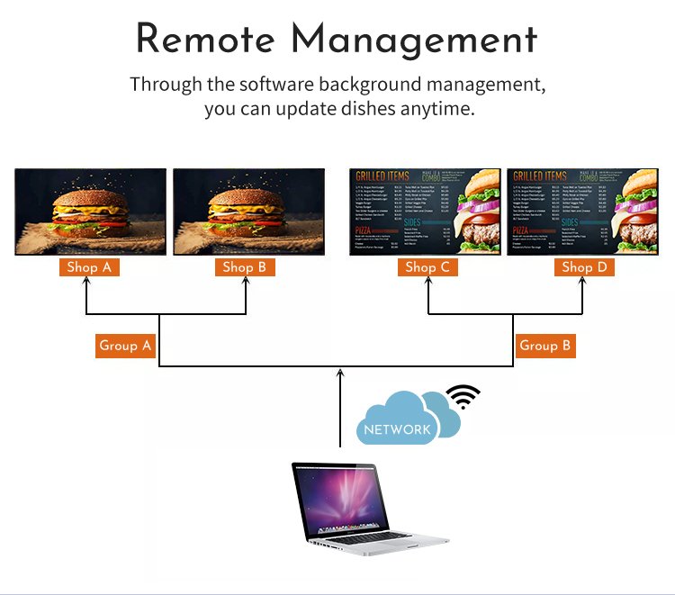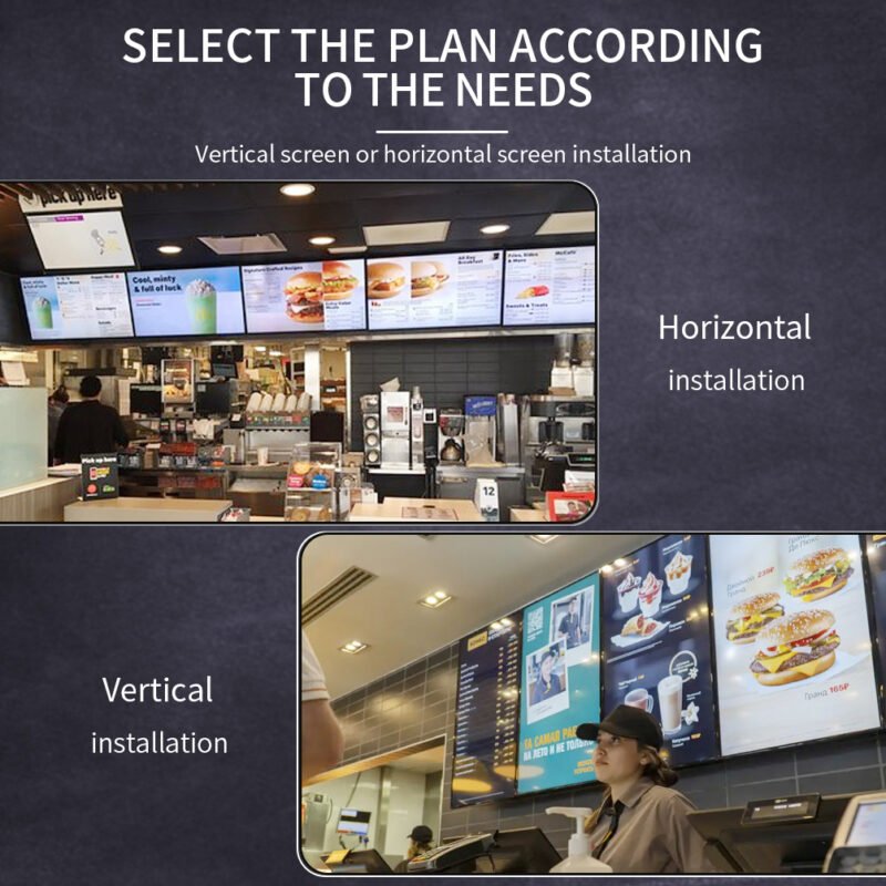 Elevate your dining experience with our 32-65 inch 4mm bezel digital menu board. Boasting 500nits brightness, anti-glare screen, and intuitive CMS software, it’s the perfect solution for restaurants, cafes, and retail stores.