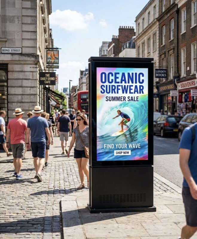 With IP65 waterproof, high brightness, wide temperature, and intelligent temperature control features, our floor standing outdoor digital signage is widely applicable to various outdoor commercial scenarios in Europe, America, and other regions. Choose our floor standing IP65 outdoor digital signage to enhance your outdoor brand exposure and advertising effect, and meet your diverse outdoor advertising needs with reliable performance and flexible placement.