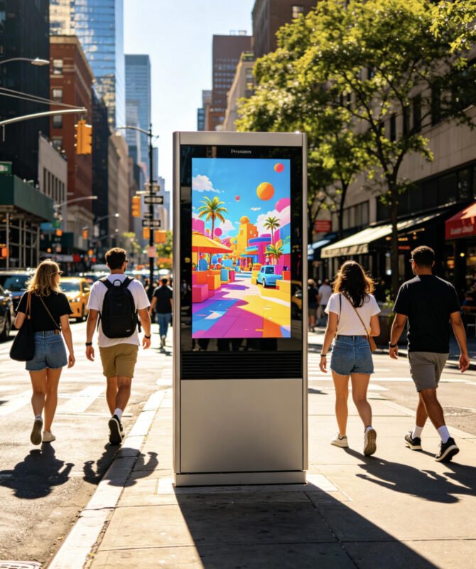 • Public Spaces: Bus stops, subway entrances, parks, and squares (delivering public information, weather forecasts, and public service advertisements).