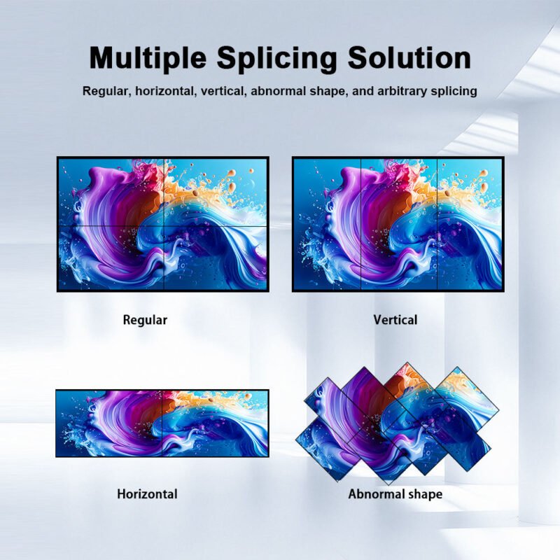 - When tiling multiple panels together, consistency is everything. Our video wall displays undergo rigorous factory color calibration to ensure perfectly matched color temperatures across the entire grid. Coupled with high-brightness output and anti-glare technology, your large-scale image will look bright, vivid, and completely uniform—without dark edges or color shifting.